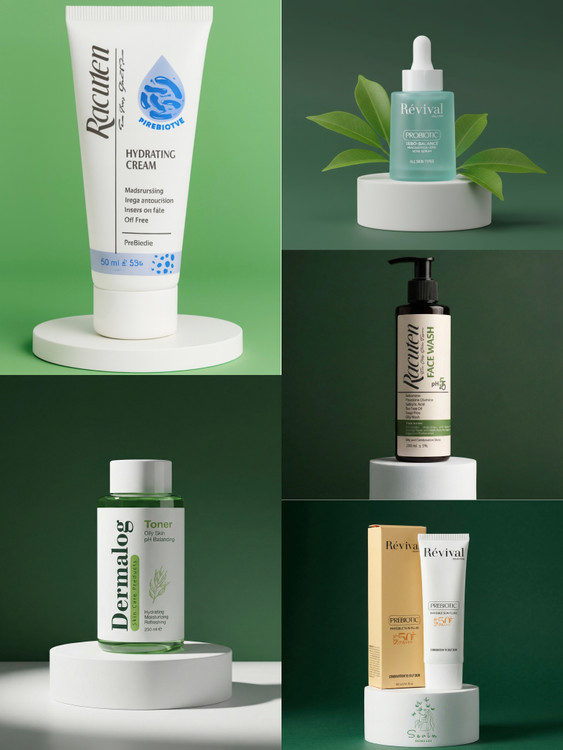 کرم آبرسان پوست چرب راکوتن، ژل شستشوی صورت پوست چرب راکوتن، سرم ضد جوش رویوال، کرم ضد آفتاب پوست چرب رویوال، تونر پوست چرب درمالوگ